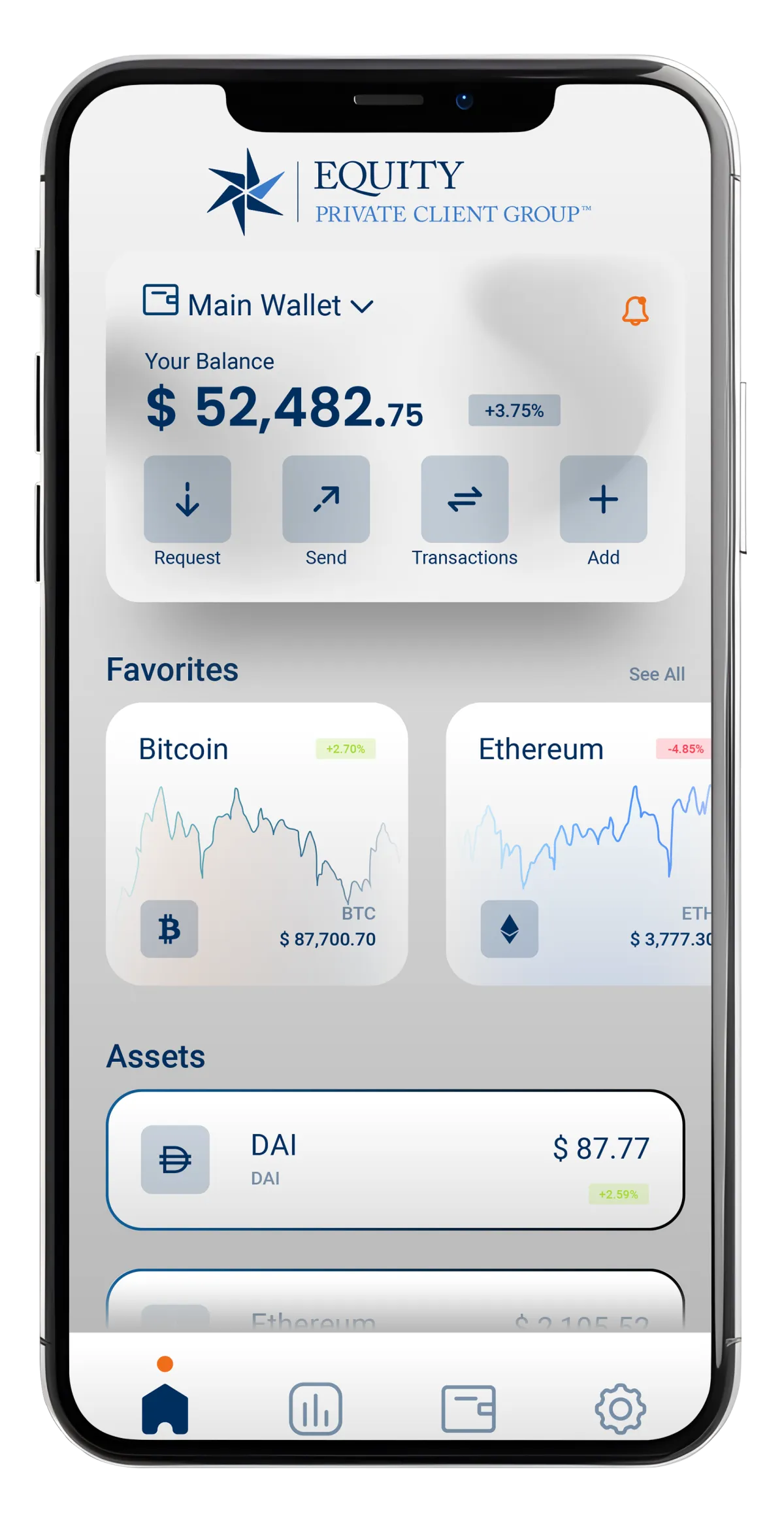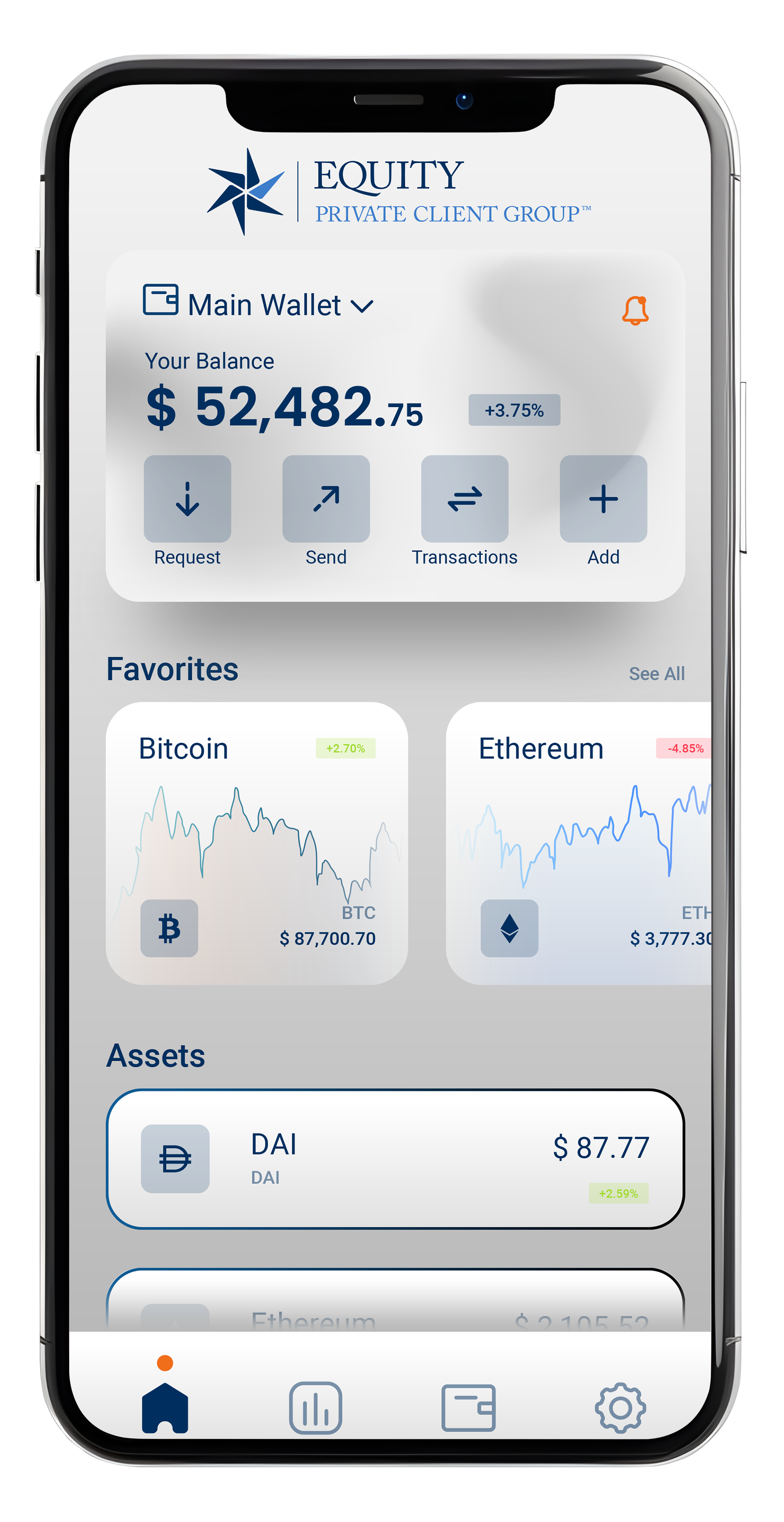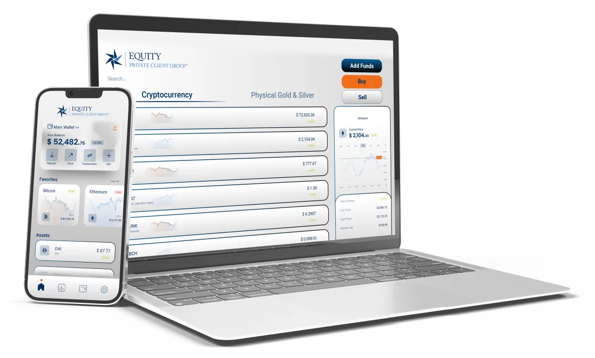 All crypto held by Equity Trust's clients are maintained in digital wallets with industry leading security.